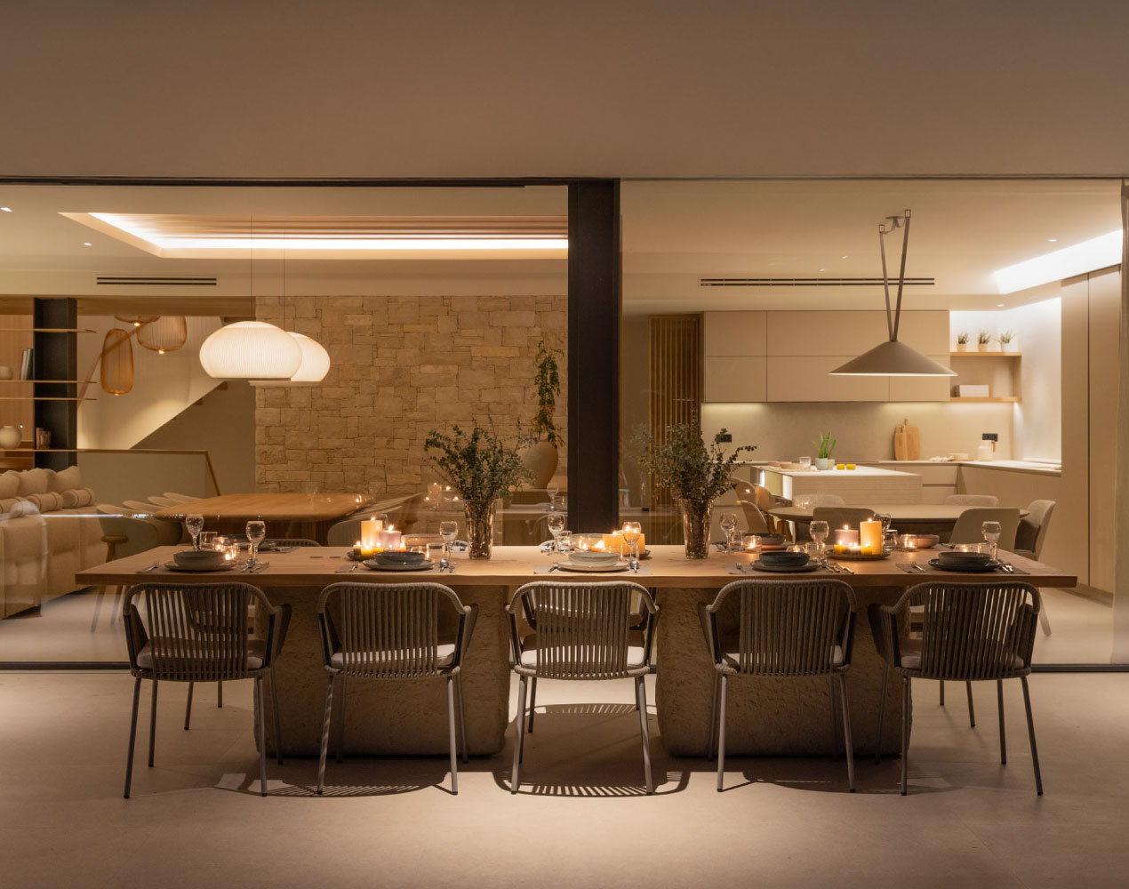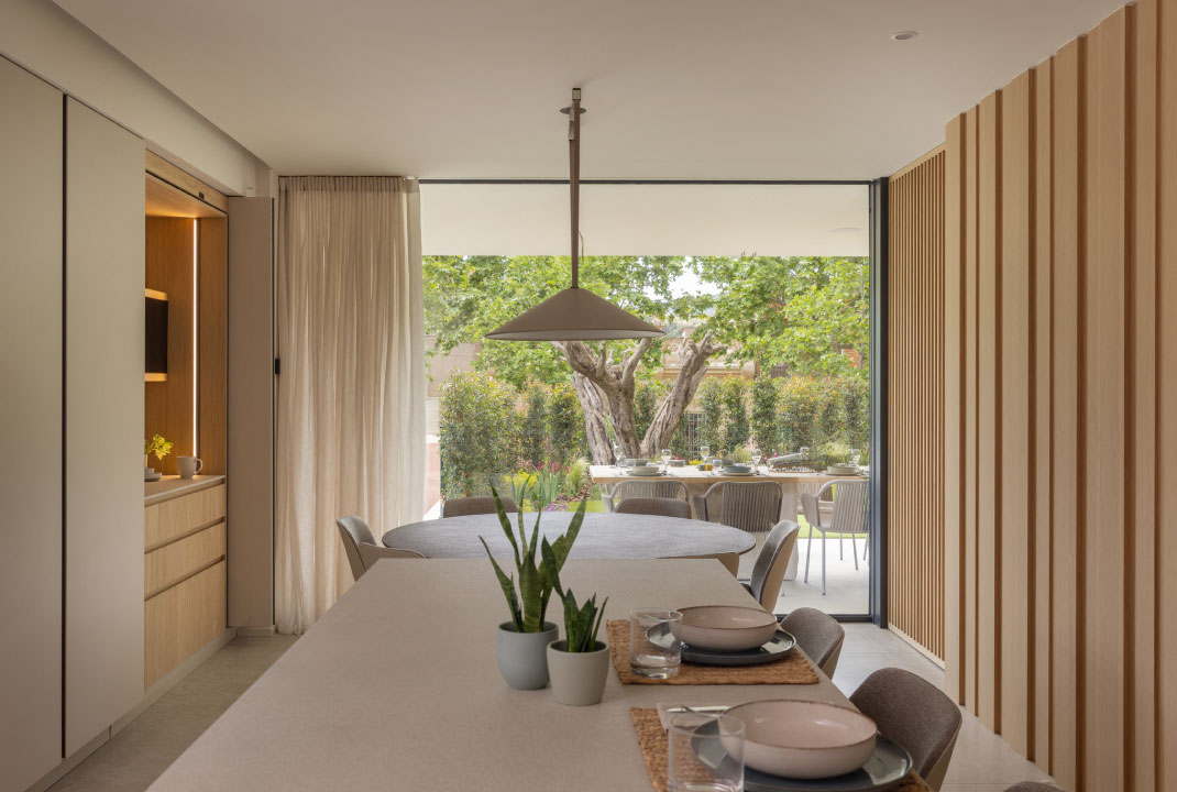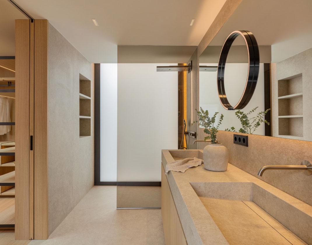 La luz natural se convierte en protagonista, configurando ambientes cálidos y habitables a la vez que optimiza el comportamiento energético del edificio. Los materiales, escogidos por su calidad y durabilidad, refuerzan el carácter contemporáneo y atemporal del proyecto.