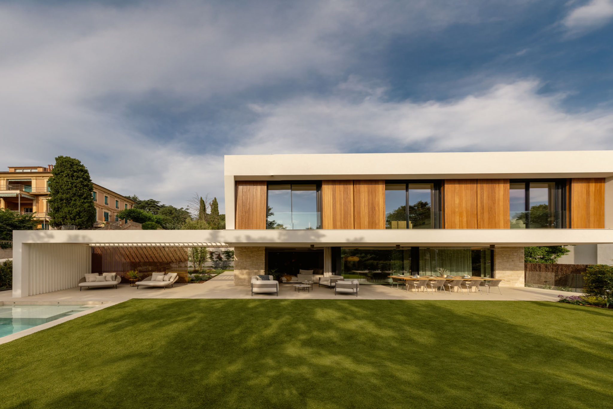 Esta vivienda unifamiliar representa la síntesis entre eficiencia, diseño y confort. Los espacios se articulan mediante grandes aberturas que permiten un diálogo constante entre interior y exterior, generando una continuidad visual y funcional que unifica los distintos ámbitos de la casa.