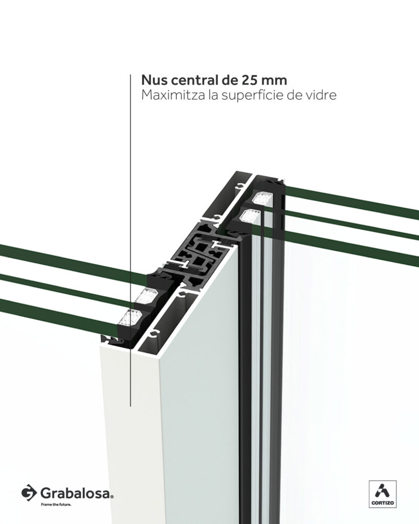 - Prestacions tèrmiques millorades, amb valors Uw des de 0,88 W/m²K i opció de triple vidre fins a 44 mm.
